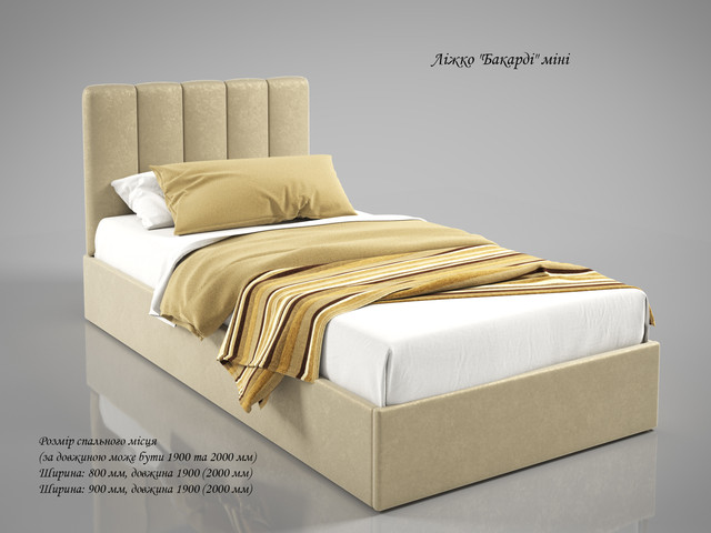 М’яке односпальне ліжко-подіум виготовляється у трьох варіантах основи під матрац: