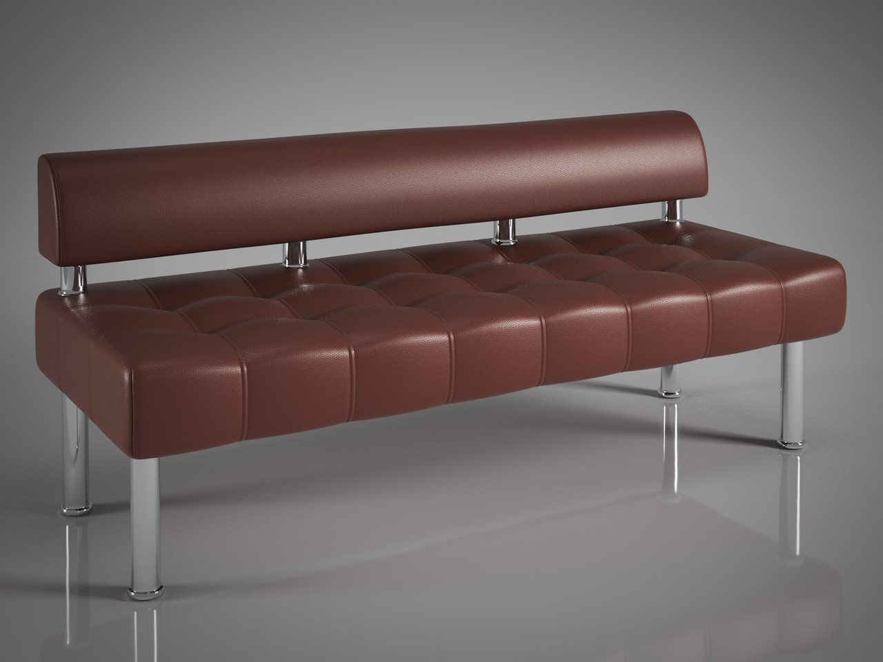 Диван Тонус – самодостатня модель, позбавлена химерності та помітних елементів, завдяки чому чудово підійде і для офісного приміщення та для кімнати очікувань, холу, вестибюлю. Масивна основа встановлена на невисокі хромовані ніжки діаметром 50 мм, які вдало підкреслюють форми виробу, а підлокітники значно покращують комфортабельність загальної конструкції. Диван Тонус виготовлений з високоякісних матеріалів і може бути виконаний у різних кольорах, формах та розмірах. На замовлення виготовляємо не стандарт.